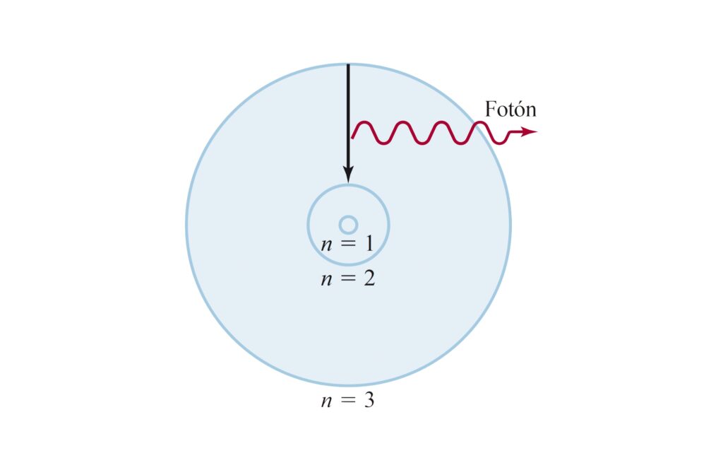 $$E_{\text{fotón}} = \Delta E = E_{\text{final}} – E_{\text{inicial}} = hf=h \dfrac{c}{\lambda}$$